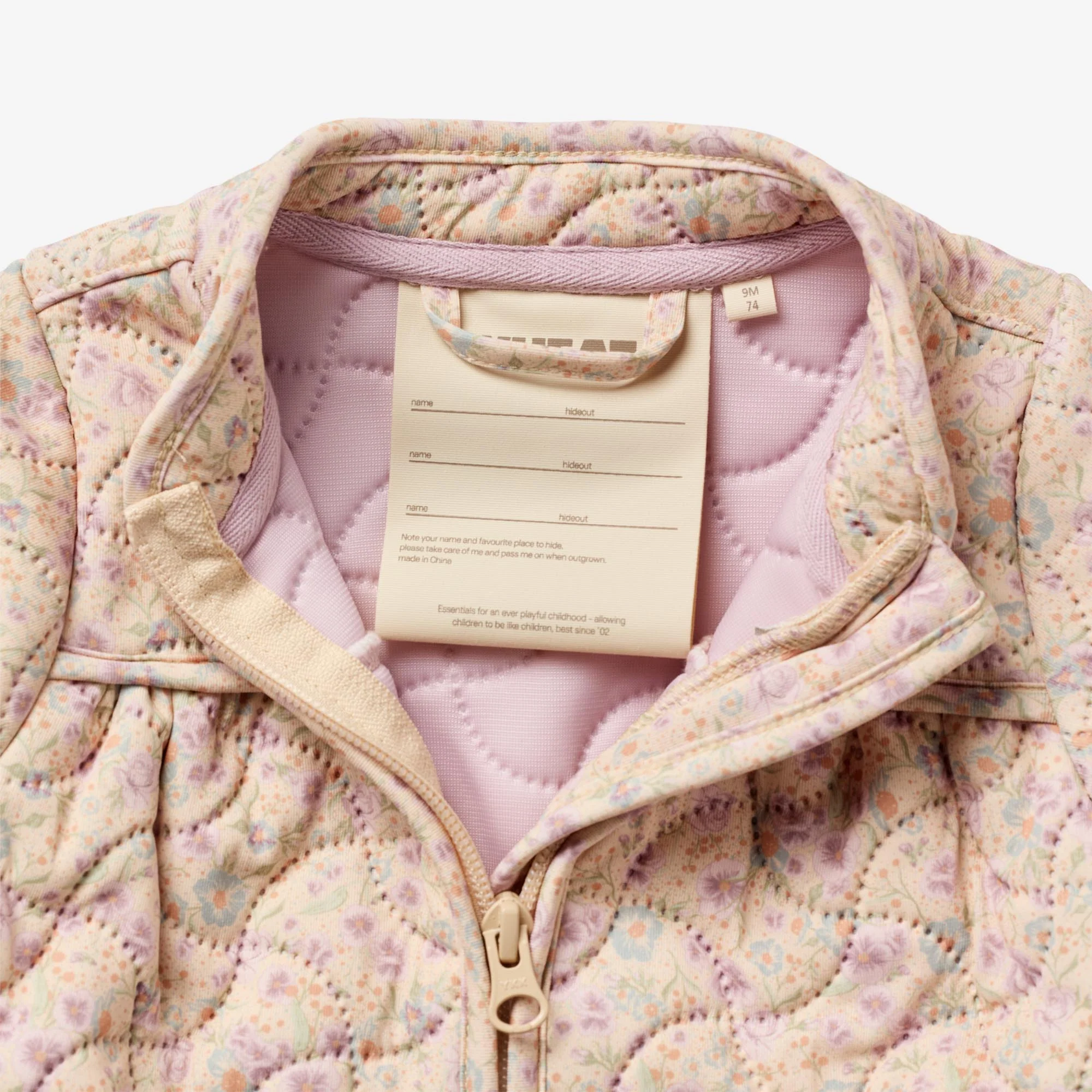 Wheat's Thermo Jacket Thilde is crafted from recycled polyester with a soft quilted lining, making it a comfortable choice for cooler days. The thermo quilt construction provides a gentle layer of warmth without being bulky, ideal for active play during autumn and spring.